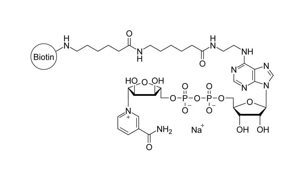6-Biotin-17-NAD+ is a biotinylated analogue of β-NAD+ which can provide a non-radioactive alternative to radio-labelled β-NAD+ for corresponding studies.