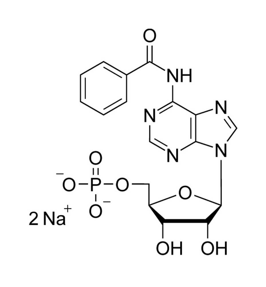 Lipophilic analogue of adenosine-5′-O-monophosphate and potential metabolite of N6-Benzoyl-cAMP (Cat. No. B 009). For the corresponding nucleoside or nucleobase please inquire. 6-Bnz-5′-AMP shows some cytokinin activity in tobacco and soybean tissue culture assays