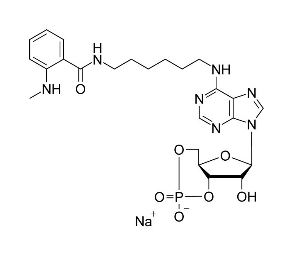 Fluorescent cyclic AMP analogue. Excitation 333nm, Emission 437nm.