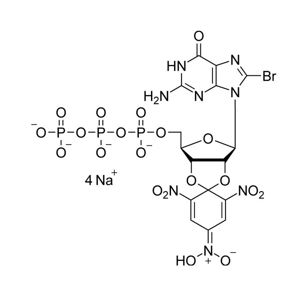 Fluorescent analogue of GTP with λexc 408 nm and λem 552 nm, which can substitute for GTP in the interaction with various enzymes and proteins. It is sensitive to indicators of local environment such as polarity and viscosity, and frequently exhibits a spectral shift and fluorescence enhancement upon binding to a protein. Potential inhibitor of various adenylyl isoforms and soluble guanylyl cyclase (sGC).