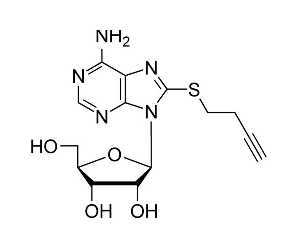 The alkyne-containing 8-Bu(3-yne)T-Ado is an analogue of adenosine and a suitable molecular tool for the copper-catalysed Huisgen azide-alkyne [3+2] cycloaddition (CuAAC), which has attracted particular interest for the introduction of reporter groups and for the labelling of various biomolecules like binding proteins of adenosine by the so-called click-chemistry technique.