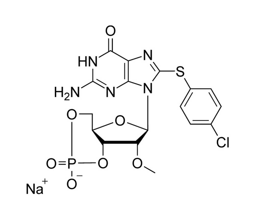 Properties: 8-pCPT-2’-O-Me-cGMP is a membrane-permeant analogue of cGMP which neither activates protein kinase G (PKG) nor the exchange protein directly activated by cyclic AMP (Epac). It can thus be used as a control.