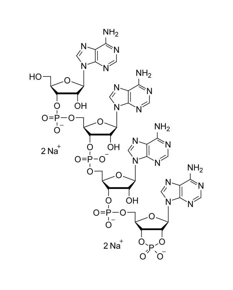ApApApA(2′,3′-cp) is considered to be an intermediate in the degradation of the bacterial second messenger c-tetraAMP (Biolog Cat. No. C 335) by ring nucleases. ApApApA(2′,3′-cp) was also found to have activating effects on Csm6/Csx1-family ribonucleases.