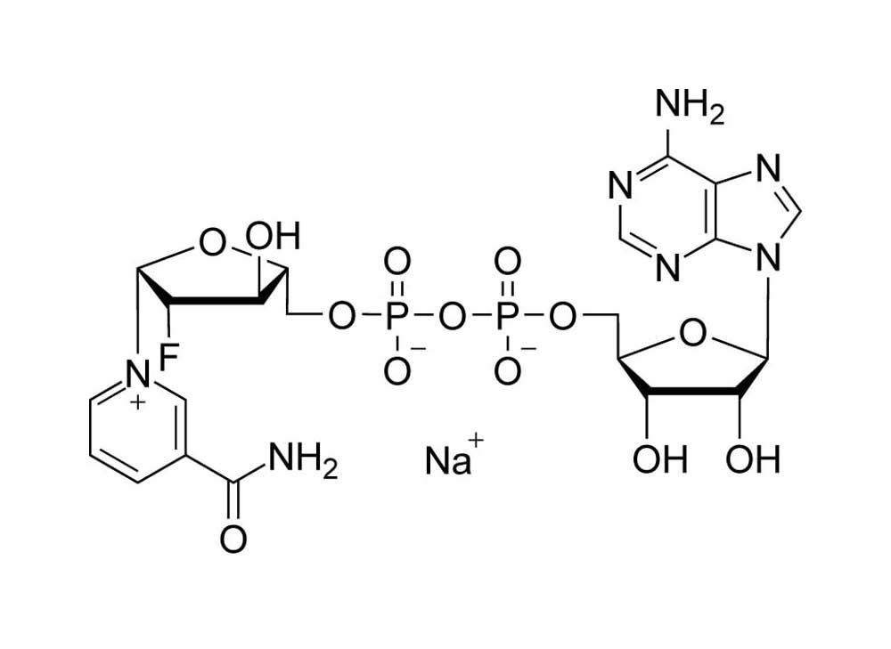 ara-2′-F-NAD+ is an analogue of β-NAD+ in which the nicotinamide-connected ribose is replaced by 2′-fluoro arabinose. Hydrolysis-resistant slow binding inhibitor of ADP-ribosyl cyclase (i.e. CD 38).