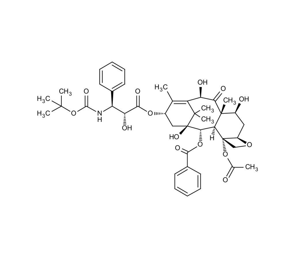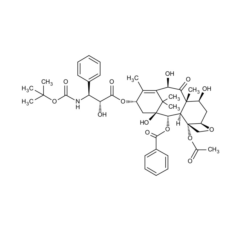 Docetaxel is taxane-type antineoplastic agent structurally similar to taxol. It reversibly binds to polymerized tubulin inhibiting depolymerization. It induces apoptosis in a large number of tumor cells and is a clinically important anticancer agent.