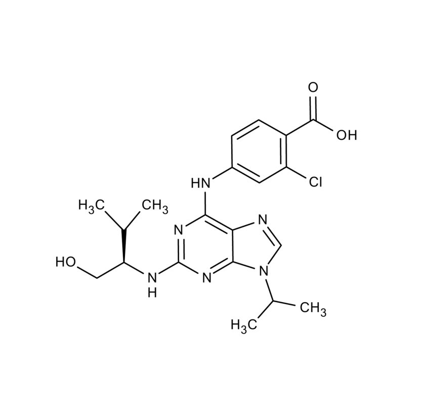 Purvalanol B inhibits cyclin-dependent kinases with IC50 values of 6, 6, 9, > 10,000, and 6 nM for cdc2/cyclin B, cdk2/cyclin A, cdk2/cyclin E, cdk4/cyclin D1 and cdk5-p35 respectively. Has also been shown to have anti-proliferative properties, mediated by p42/p44 MAPK.